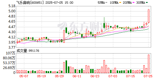 飞乐音响(600651)今日涨停,全天换手率3.95%,成交额4.88亿元,振幅10.02%。龙虎榜数据显示,沪股通净买入997.89万元,营业部席位合计净买入4592.74万元。